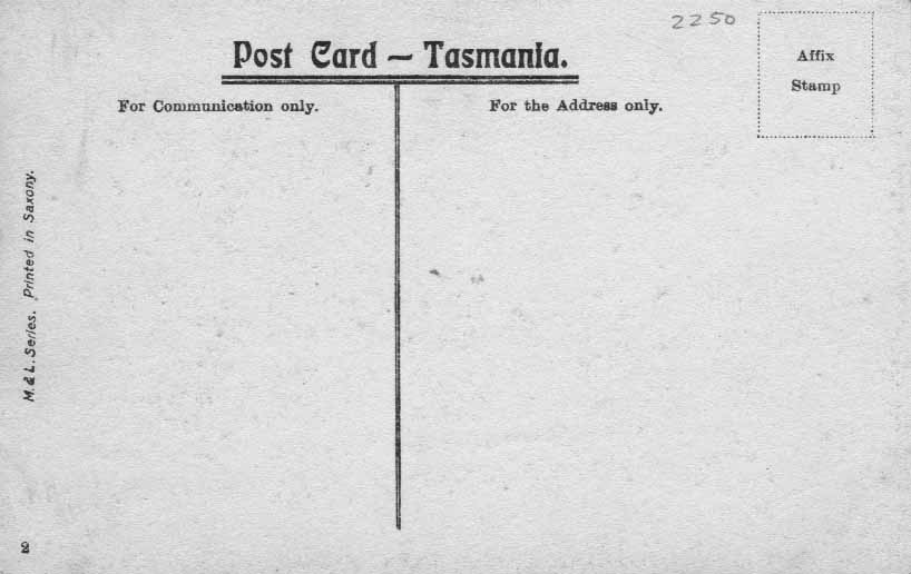 - Along the left margin "Copyright M. & L. Series. Printed in Saxony" or "M. & L. Series. Copyright Printed in Saxony", or for the b&w cards "M&L Series Printed in Saxony"