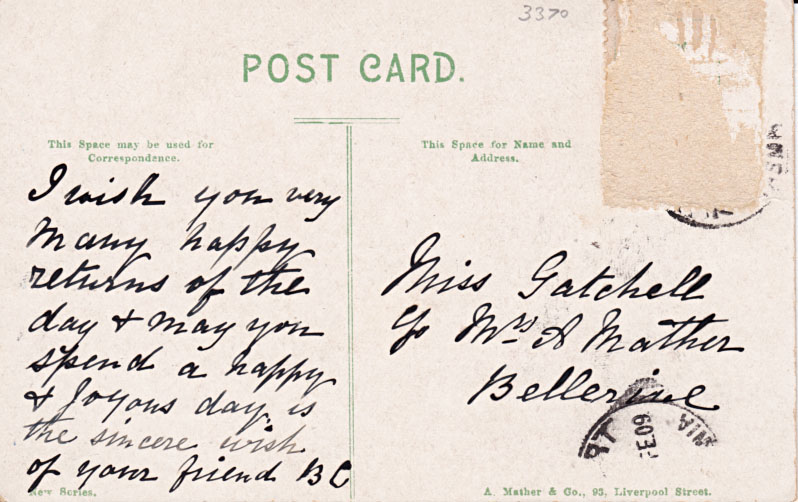 Identification: These are printed by the same technique as series 3, 4 and 5.but differ in layout. The publishers name is printed on the address side bottom right. The cards are identified as "New Series" on the address side bottom left, but we don't know which old series they are being differentiated from. The words POST CARD are in an unusual sans serif font.