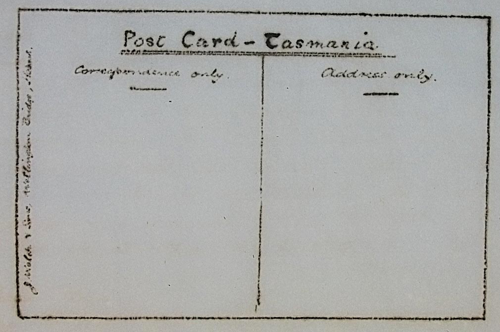 The following will make one complete sheet of 32 post cards. The first nine will be reprints as invoiced by you 6th October 1906, with the exception of “Huon Bridge” & in place of this view we have ordered a reprint of “The Post Office”. We have omitted the “Tasmanian Tiger – Native”.